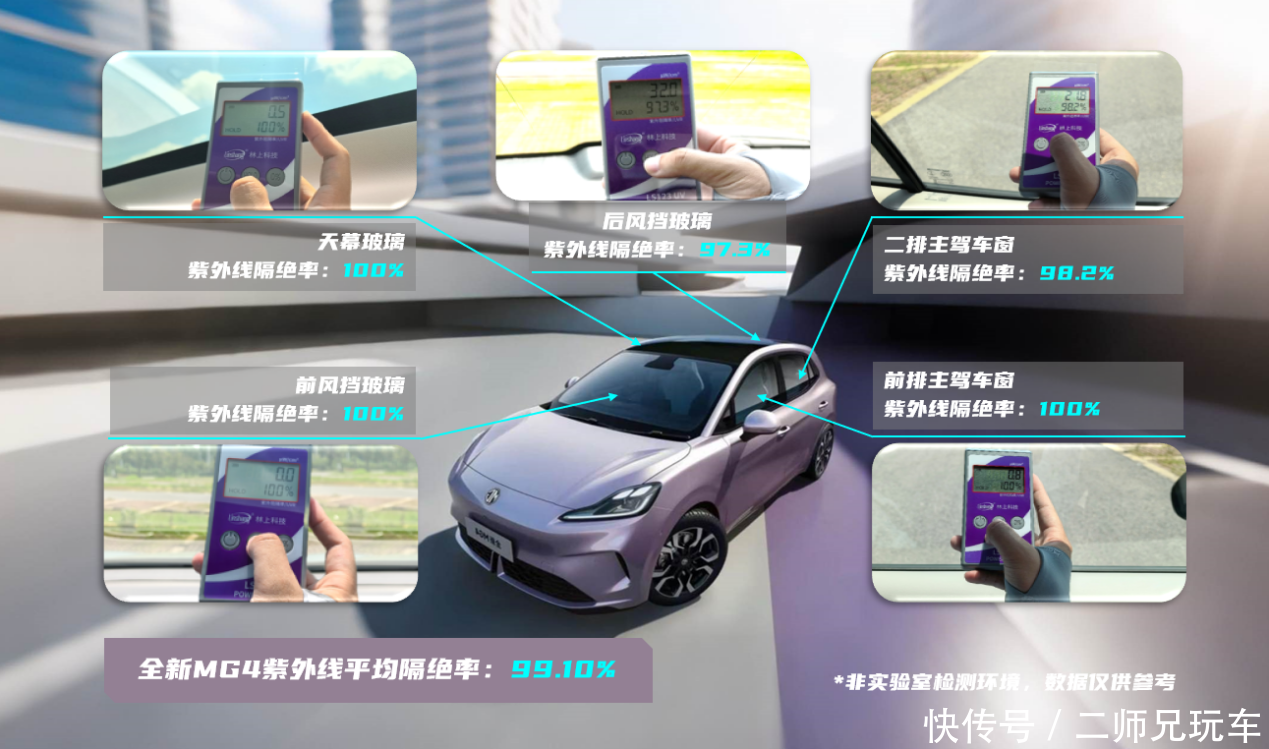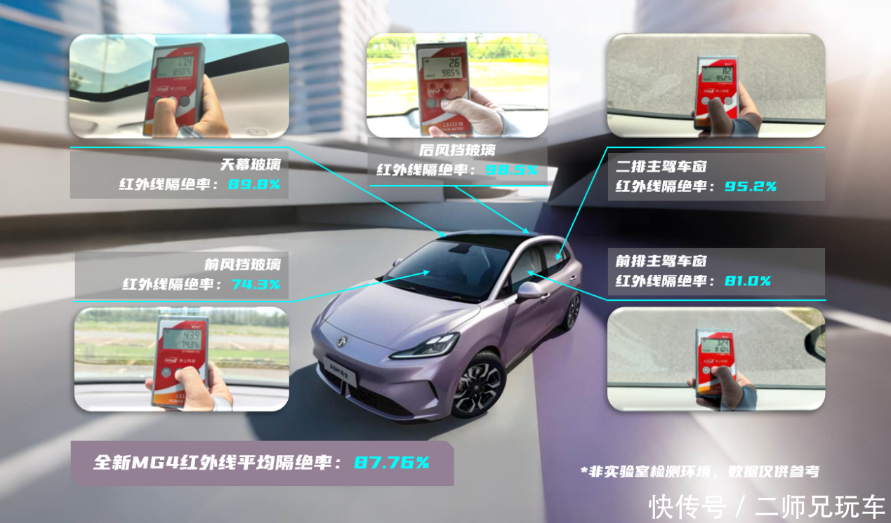 同样在2025年8月,我们团队还为全新MG4进行了一场温度高达36℃的极热防晒隔热降温大实测,从结果来看,其以更好的用料和配置实现了99.10%的平均紫外线隔绝率、87.76%的平均红外线隔绝率以及远高于同级竞品车的防晒、隔热、降温表现。