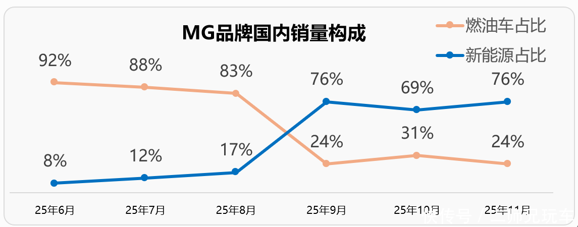 值得一提的是,MG品牌新能源汽车的销量占比也在迅速爬升。